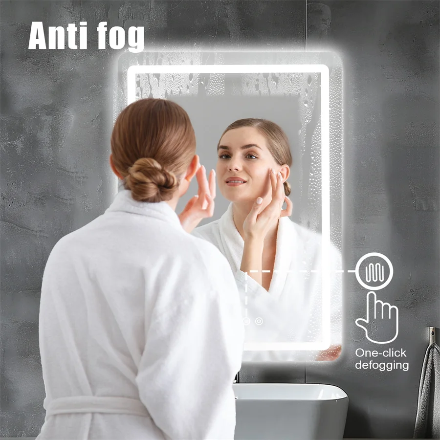 3. The separate controls for defogging and lighting ensure safety and energy efficiency. Simply activate the anti-fogging switch when needed. Turn On The Anti-Fog Function In Advance, You Can See The Clear Face & Pores As Usual After Shower.