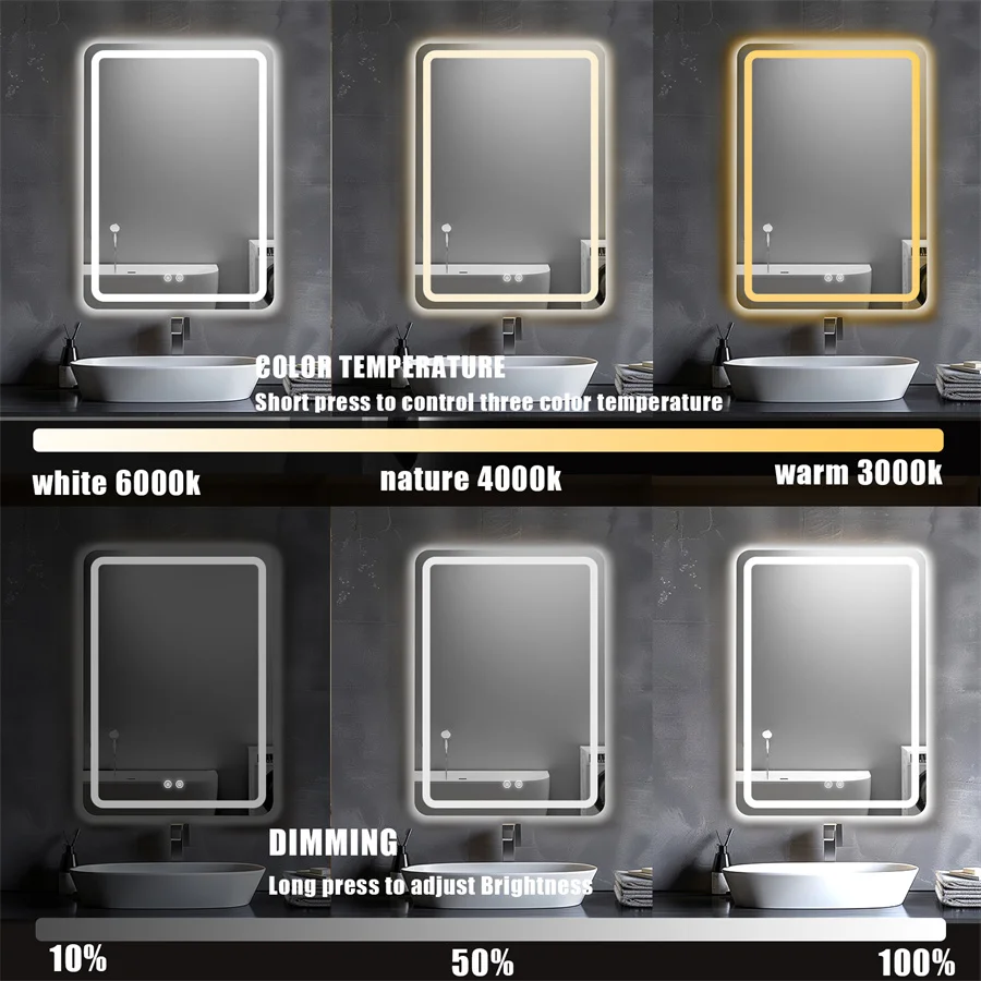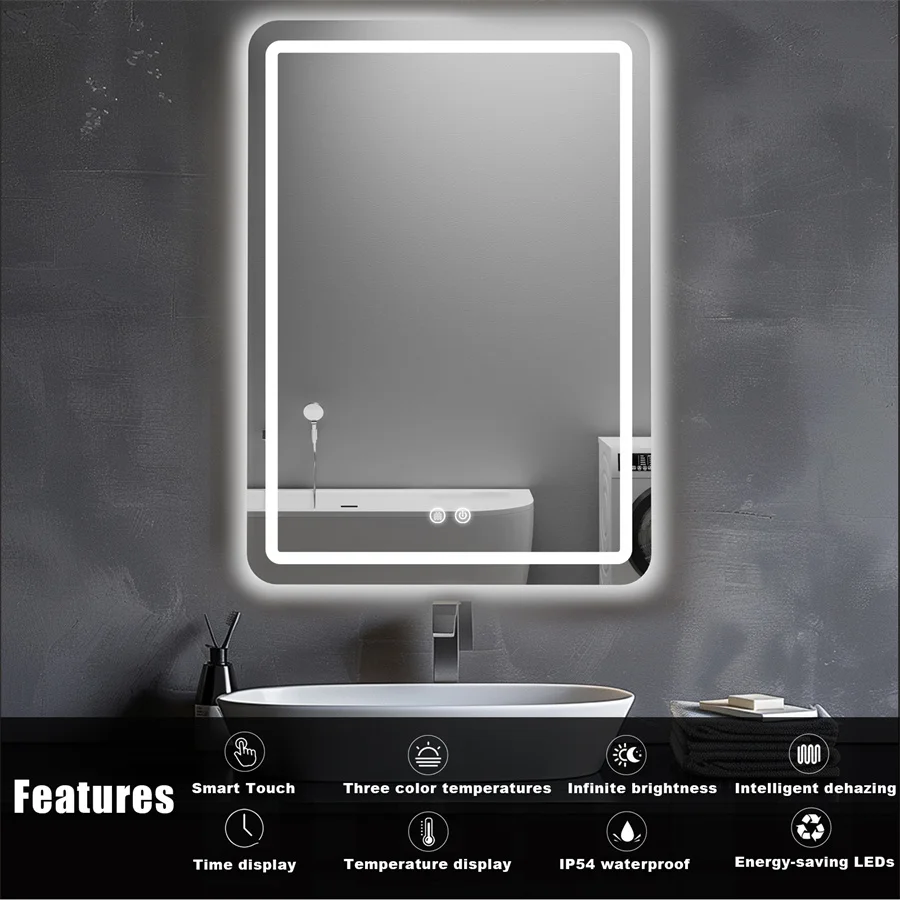 1. Round corner led bathroom mirrors always easily catch people's eyes as a decoration in their bathroom. high quality black frame keep this mirror always look like just bought, keep using 100% new LED bathroom mirror all the time. We provide unique and distinctive mirrors that elevate your home décor with an artistic and stylish vibe.